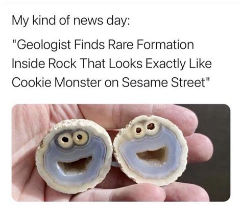 Rock formation that looks like cookie monster could fetch $10,000. And it could end up being quite valuable. Web by scott stump keep this rock away from any cookies just to be safe. Web geology rock collector finds rare gemstone that looks like cookie monster news by stephanie pappas published 27 january 2021 mother nature must be a fan of sesame street. Web bowers described this cookie monster rock as an agate, a common formation found in volcanic rocks. Rock formation that looks like cookie monster could fetch $10,000. A gemologist has discovered a rare agate gemstone inside of volcanic rock that bears a striking resemblance to the googly. What this californian scientist wasn’t expecting was to open up a. Web the inside of this volcanic agate rock looks a lot like a beloved blue muppet. Web jan 22, 2021 when geologists go on research trips, they’re normally looking to observe specific rocks, minerals, and fossils. Here's a description of what agate is and how it forms from geology.com :