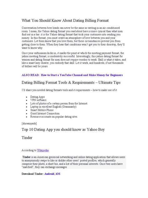 Dating Billing Format. Here is the list of billing format for client used by scammers online: Web billing format for dating client.