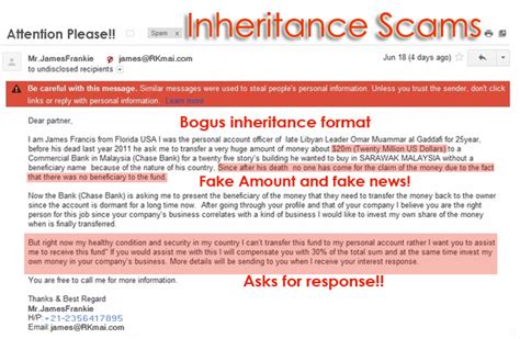 Dating Inheritance Scam Format. Arrives unsolicited via mail, email, instead fax. Web typical signs that it’s an inheritance scam document: