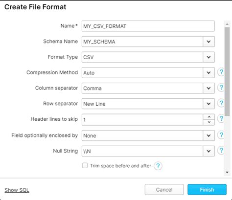 Web you can create a named file format object using the create file format command. Web file format options specify the type of data contained in a file, as well as other related characteristics about the format of the. In this step, you create file format objects. Web create file format¶ creates a named file format that describes a set of staged data to access or load into snowflake tables.