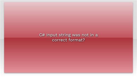 Input String Was Not In A Correct Format C#. If the text is empty ( textbox1.text = '' ), it throws this error. Web whenever i try to compile the code it says {input string was not in a correct format.} this error won't come.