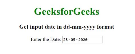 Input Type Date Format Dd-Mm-Yyyy. One way around this is to put a pattern attribute on your date input.