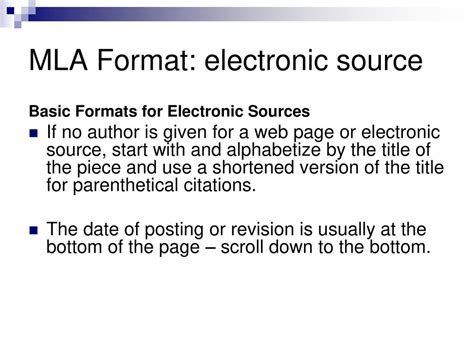 Mla Format Electronic Sources. Basic format basic guidelines for formatting the. How to cite electronic sources in mla style.