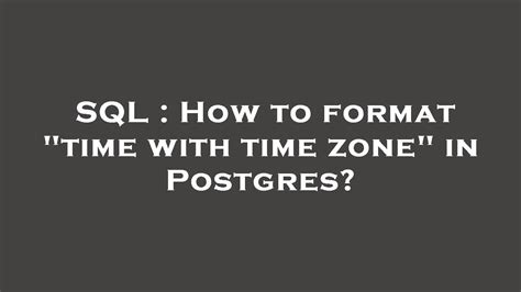 Postgres Time Format. Web the postgresql formatting functions provide a powerful set of tools for converting various data types (date/time,.