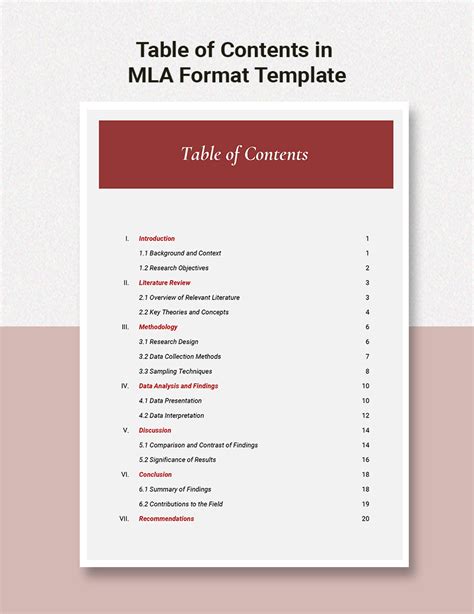 Table Of Contents Mla