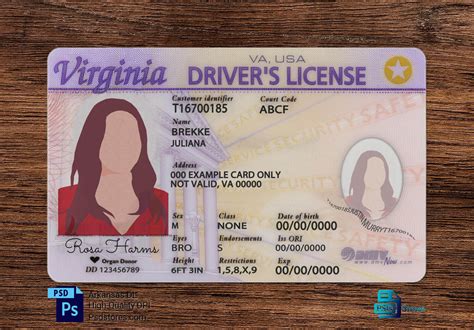Virginia (VA) Drivers License PSD Template Download IDViking Best